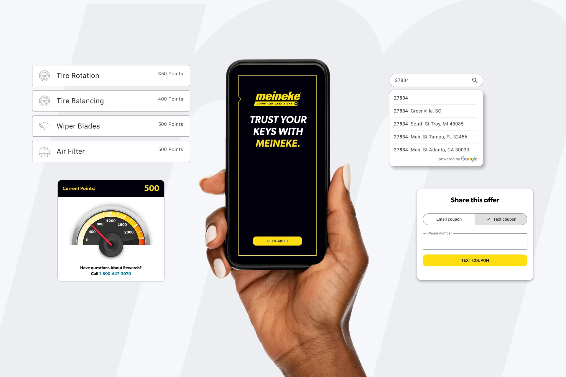 • Store Locator: Easily find nearby Meineke locations with real-time map integration and detailed service center information.